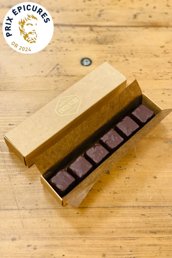 Box of 6. Certified BIO. Cocoa from the Dominican Republic. Winner of the Epicures d’Or 2024. Not a praliné.