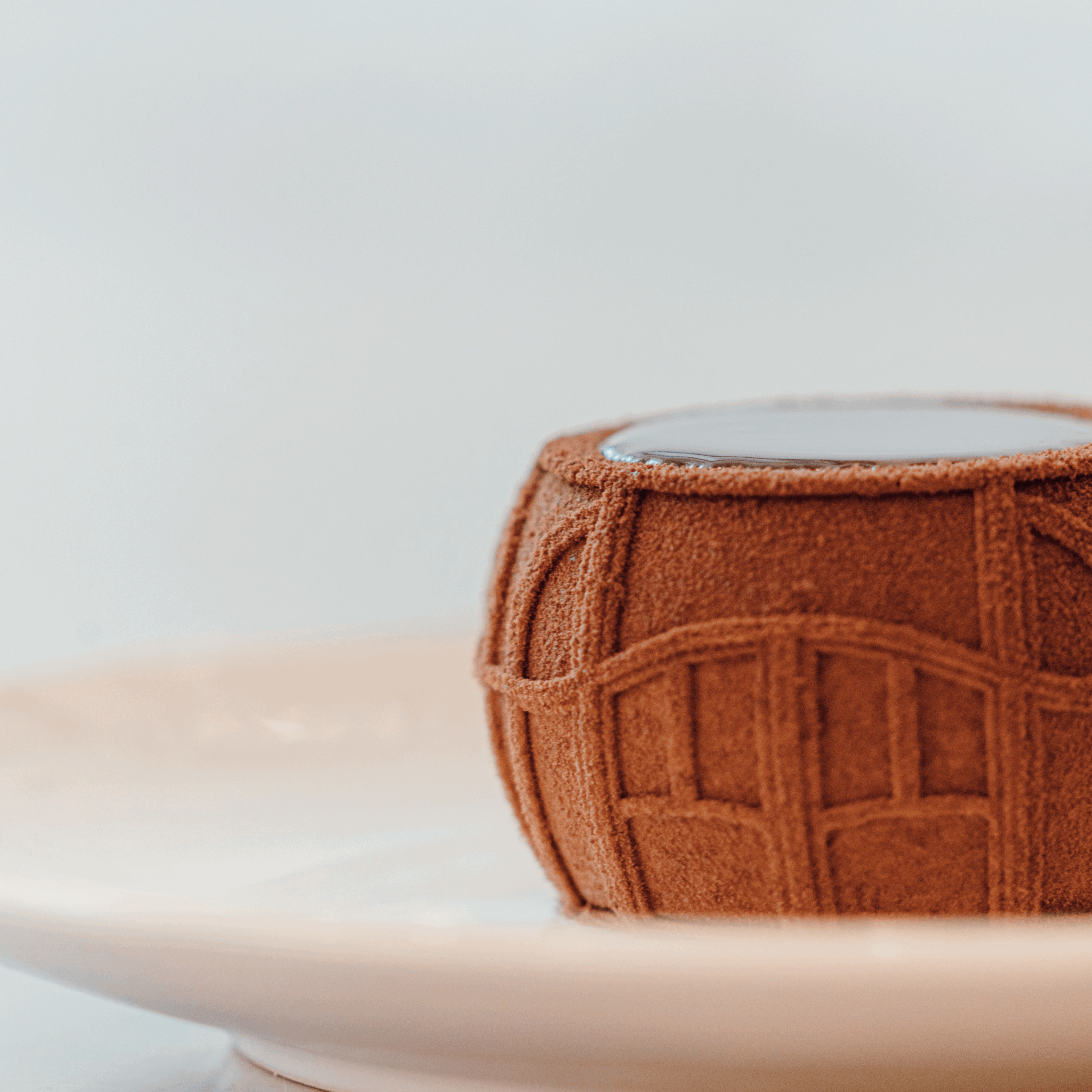 The signature chocolate pastry, offering a rich journey through different textures and forms of cocoa.