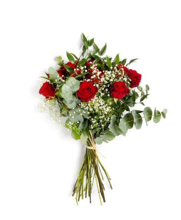 Express your passion through the intensity of our red roses, the brightness of gypsophila, and the freshness of eucalyptus.
